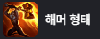 | 스킬 | 액티브 마나 0/60 해머 형태로 변환해 방어력과 마법 저항력을 얻습니다. 이 스킬을 해머 슬램으로 교체하고 즉시 스킬을 사용합니다. 해머 슬램 : 대상에게 도약해 물리 피해를 입힙니다. |