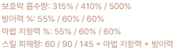 | 스킬 | 액티브 마나 40/90 사용시 : 6초 동안 200의 보호막을 얻습니다. |
