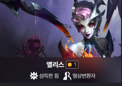 | 스킬 | ![]() 액티브 마나 0/40 주변 적에게 마법 피해를 입히고 6초 동안 방어력과 마법 저항력을 얻습니다. 그동안 기본 공격이 추가 마법 피해를 입힙니다. ![]() |