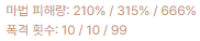 | 스킬 | 액티브 마나 0/30 대상에게 마법 피해를 입히고 남은 전투 동안 대상의 마법 저항력을 10만큼 감소시킵니다. |