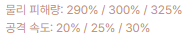 | 능력치 | 체력(1050/1890/3402) 공격력(70/105/158) DPS(39/58/87) 공격사거리 1 공격속도 0.55 방어력 60 마법저항력 60 |