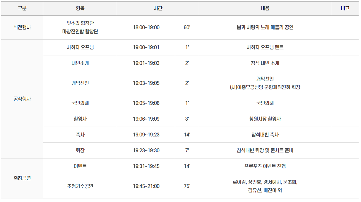 출연가수 로이킴, 장민호, 경서예지, 문초희, 김유선, 배진아 외 엄청난 가수들이 축하공연을 한다.